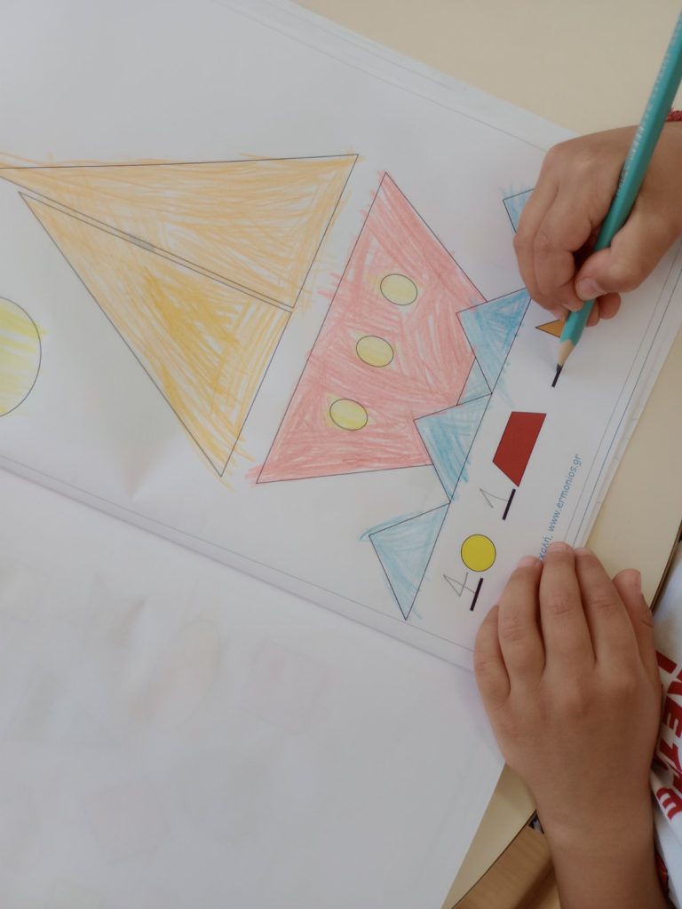 Στα μαθηματικά τα παιδιά κατακτούν βασικές προμαθηματικές έννοιες. Αρχίζουν να περιγράφουν, να αιτιολογούν, να συγκρίνουν και να συσχετίζουν αντικείμενα, να αναγνωρίζουν απλά σχήματα στο περιβάλλον. Ωθούνται στη σταδιακή κατανόηση της έννοιας των αριθμών, καθώς και στη σύγκριση και ταξινόμηση των μεγεθών. Ασκούνται στην ικανότητα να προβληματίζονται και να επιδιώκουν λύσεις. Έρχονται σε επαφή με τους αριθμούς, αισθητοποιούν τους αριθμούς ως το 20, κάνουν απλές μαθηματικές πράξεις και συλλογισμούς και γνωρίζουν απλά γεωμετρικά και στερεά σχήματα.